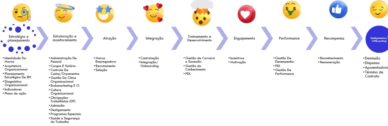Na esfera corporativa, nosso diferencial primordial reside na abordagem holística que adotamos. Diferentemente de focar exclusivamente em subsistemas isolados, reconhecemos a importância de cultivar cada etapa da jornada do colaborador. Tanto em nossos serviços de gestão quanto nos infoprodutos, proporcionamos soluções abrangentes em cada etapa:
